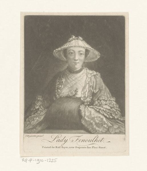 James McArdell created this mezzotint print, "Portret van Anne Day," sometime in the mid-18th century. Anne Day is portrayed with an assured gaze, adorned in the height of fashionable attire. Consider how societal expectations shaped women’s roles and identities during this era, especially within the confines of marriage and domestic life. While women were often celebrated for their beauty and charm, their intellectual and professional opportunities were limited. Anne’s confident presentation invites us to consider the tension between the restrictive roles imposed on women and their individual agency. The luxurious textures of lace and fur contrast with the relative austerity of Day's face. The image isn't just a likeness; it subtly reflects the negotiations of identity within a society defined by rigid class and gender boundaries.
