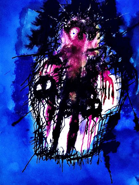 This untitled work by Thomas Riesner is a striking image made with marker on paper, its simple means belying the intensity of its expression. The stark use of black, red, and blue creates a raw emotional impact. The figure, trapped behind a web of lines, evokes feelings of isolation and struggle. This piece might reflect the social anxieties of the late 20th and early 21st centuries in Germany, born of political disillusionment, economic instability, and questions of personal identity in the face of increasing globalization. Perhaps the artist is commenting on the restrictive structures of society, be they physical or psychological. Analyzing Riesner's work requires considering the broader historical and cultural context. Researching the artistic movements and social conditions prevalent in Germany during his career can provide valuable insights into the meaning and significance of this piece. Art becomes meaningful when we think about its role within a specific culture.