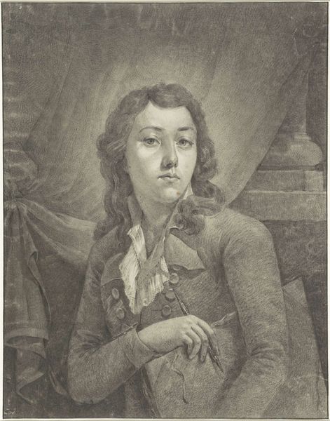 Editor: This is Ilya Repin's "Portrait of E.G. Mamontova," a pencil drawing from 1879. It feels both intimate and formal, almost like a photograph but softened by the medium. What strikes you most about this portrait? Curator: I think it's important to look at this piece through the lens of 19th-century Russian society. Repin was deeply involved in the Peredvizhniki movement, which sought to depict everyday life and challenge the elitist art establishment. A portrait like this, then, becomes more than just a likeness. Who was Mamontova, and how might Repin’s portrayal reflect or challenge the gender roles of the time? Editor: I hadn't thought of it that way. She seems contemplative, even reserved. Does her pose tell us something about her social position or Repin's view of women? Curator: Exactly. The subtle details matter: the way she holds her arms, her direct gaze. Is she an active participant in her portrayal, or a passive subject? And consider Repin's artistic choices. The looseness of the sketch could imply accessibility, a rejection of academic rigidity in favor of capturing something more human. What impression do you get from his stylistic approach? Editor: It feels honest, less staged. It makes you wonder about her personality beyond just her social role. Curator: And that's where the dialogue begins. Repin provides a glimpse, not a definitive statement. The historical context informs the image, but it is still ultimately, and powerfully, a perspective. Editor: So, seeing it within the context of the Peredvizhniki movement changes the way we interpret the individual in the portrait. It becomes less about the surface and more about the underlying social commentary. Curator: Precisely. And that interplay between the individual and society is what makes it so compelling. Editor: This was really insightful, I now have a completely different perspective on this drawing. Thanks!