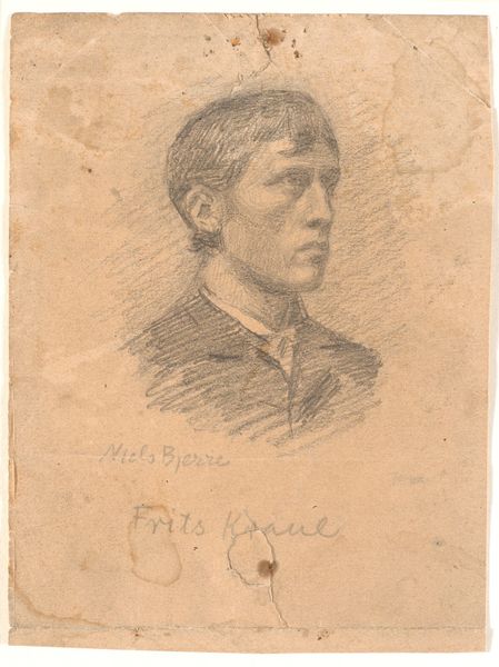 Curator: Here we have L.A. Ring’s "Portrait of a Young Italian Man with a Cap," likely made between 1893 and 1895. The medium is pencil on paper. Editor: It’s wonderfully subtle. The lines are so delicate, but there's a quiet strength in the sitter’s gaze. I'm drawn to the detail in the cap and how it contrasts with the softer rendering of his face. Curator: Yes, notice how the hatch marks build up the texture, giving form to the fabric and casting believable shadows. The materiality of the drawing itself speaks to the artist's process. And the visible corrections... Editor: Right, they give us a sense of Ring’s hand and labor. But for me, the cap is loaded with symbolic meaning. In this era, a cap might signify a certain social class or profession. Do you know anything about who the young man might be? Curator: No definitive evidence. He’s identified in the inscription as Alfano Giuseppe. But who was he and why Ring depicted him remains a bit of a mystery. What does it say to you? Editor: There's an everyday quality to this work. It isn't idealized, nor overly embellished, despite the possible classical influences evident from the portrait’s stylistic attributes. It’s as though the sitter were intentionally represented in the way of a modern worker. It gives the artwork an emotional depth. Curator: Precisely. And that connects to Ring's own socio-political concerns. Though not overtly political, his artistic project centered on realistically representing the everyday lives of ordinary people. It challenged conventional representations of national identity, as you astutely point out, through its embrace of ordinary materials like the simple pencil. Editor: The marks are beautiful and sensitive in themselves! The symbolism isn't flamboyant, but potent, don’t you think? The tilt of the head, the way the cap is worn, his expression – these small things build up to suggest more about his history, origins, character. Curator: I’m increasingly drawn to its careful craftsmanship and subtle subversion of artistic norms! Editor: For me, seeing through layers of artistic intention unlocks even more understanding. I am always left pondering the man behind that quiet but intense gaze.