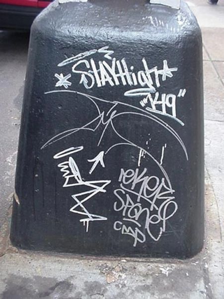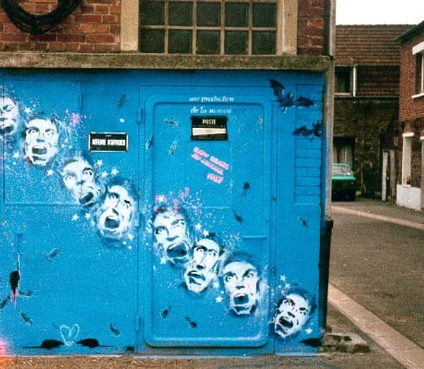 Curator: Here we have “33 avenue Paul Vaillant Couturier” by Epsylon Point. The piece employs a mix of media, featuring acrylic paint and stencil techniques on, well, an unexpected surface. What jumps out at you? Editor: It has such a visceral feel. The bright yellow juxtaposed with chaotic graffiti immediately grabs your attention. There's an urgency and rawness that's really compelling. Curator: Indeed. Let's consider this vibrant, if defaced, mailbox as a readymade, an object pulled from the everyday urban environment, transformed through layering of interventions. Epsylon Point uses it as a canvas for exploring social messaging. Note the stencils depicting figures amid the spray paint and tagging. Editor: Absolutely. I’m struck by how it’s almost palimpsestic, layers upon layers of meaning building up over time. The recurrence of “La Poste,” for instance, takes on an almost satirical tone considering the critiques scribbled all around it. Curator: Precisely. Appropriation and recontextualization are central here. Consider the act of defacing, the subversion inherent in marking public property. The materials used--spray paint, stencils—they speak to a certain kind of urban counter-culture. It raises interesting questions about public space and agency. Editor: The placement of these interventions transforms a utilitarian object into something emotionally charged, really emblematic of struggles within contemporary urban society. The iconography seems to protest institutions even as it makes use of their material infrastructure. Curator: It makes us think about how easily the intended function and meaning of everyday items can be hijacked, altered by external interventions expressing communal tension. The mailbox isn’t just for mail anymore, but a public canvas for voices typically unheard in more traditional settings. Editor: Exactly. I think I came here expecting one thing but have really discovered something that conveys, if crudely, the psychology of public space. Curator: A collision, if you will, of postal service, public protest, and artistic expression all sharing the same space.