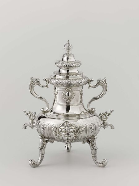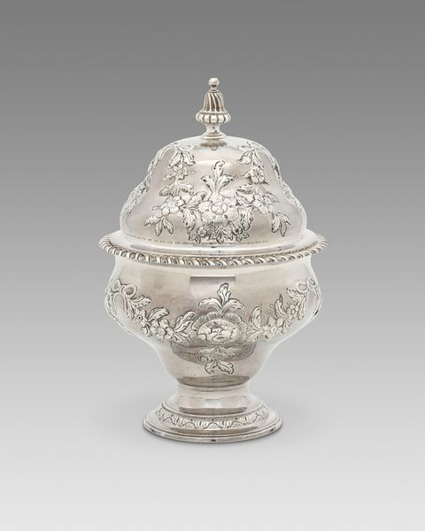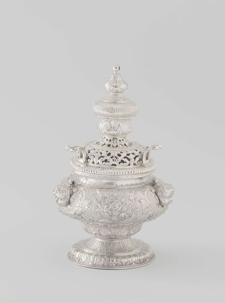 The Unie Society of Amsterdam commissioned a cup for its tenth anniversary. It was decorated with a variety of techniques by Amsterdam’s then leading silversmith, Philippe Metayer. The lively band of weapons surrounded by masks has been chased (with a hammer and punch) as well as chiselled (with a hammer and chisel). The small branches behind the coats of arms were engraved (with a burin).