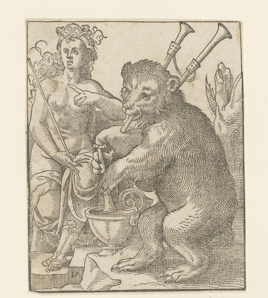 Franz Brun created this tiny etching of a chained monkey in the late 16th century. This printmaking technique involves incising lines into a metal plate with a sharp needle, then applying ink to the plate and using a press to transfer the image onto paper. The controlled, precise nature of the etching process contrasts with the image itself. Brun has created a symbol of captivity: the monkey is literally and figuratively caught by the chain, with the cut metal lines reinforcing the sharp reality of the monkey's condition. Etchings like this one were often produced in multiples and sold as a commodity. The contrast between the labor intensive process, the animal's status as a commodity, and the print's existence as a commodity encourages us to think about the complex relationships between art, labor, and the marketplace in the early modern period. By understanding the making, we gain a richer sense of this image's meaning.