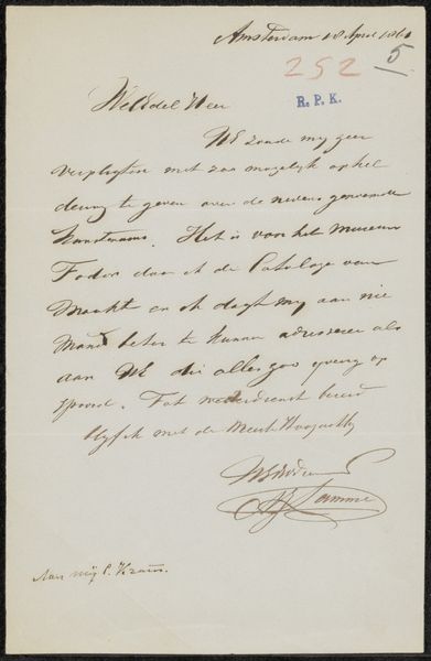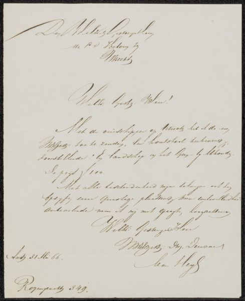 This handwritten letter, penned by Engelbert Michael Engelberts, is an appeal to the Exhibition of Living Masters in Haarlem. Yet, it is more than a mere historical note; it’s a tableau of symbolic gestures. Consider the handwriting itself, a dance of ink across the page, each stroke imbued with the spirit of the petitioner. Think of handwriting's ancient connection to personal expression, to the soul laid bare. The signature, a flourish meant to cement identity and ensure authenticity, reminds me of official seals from centuries past. The signature has origins in personal and collective identity: as the symbol of a society that moves towards self-expression. The letter, on the whole, serves as a testament to the enduring human desire for recognition and acceptance. The very act of writing, of seeking acknowledgment, resonates across time, linking us to those who came before. It is this connection that gives the letter its profound emotional weight, engaging us on a deep, subconscious level. The letter, as a symbol, evolves and resurfaces throughout time, adapting to new forms and contexts, yet always retaining its essence.