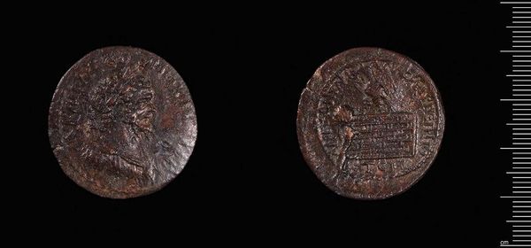 Editor: This is a bronze coin from Laodikeia ad Lycum under Elagabalus, currently at the Harvard Art Museums. It’s amazing how much history can be held in such a small object. What can you tell me about it? Curator: It's fascinating to consider this coin not just as currency but as a product of Roman imperial power. The very act of minting coins reflects control over resources and labor. Editor: How so? Curator: Think about it: Who controlled the mines that yielded the metal? Who designed the dies, and what was the social status of the artisans crafting these objects? The coin itself becomes a miniature monument to that system. This piece isn’t just money; it’s material evidence of Roman imperial infrastructure. Editor: I never thought about it that way, as more than just money. Curator: Right? Seeing the object through a material lens highlights the complex network of power and production embedded within it.