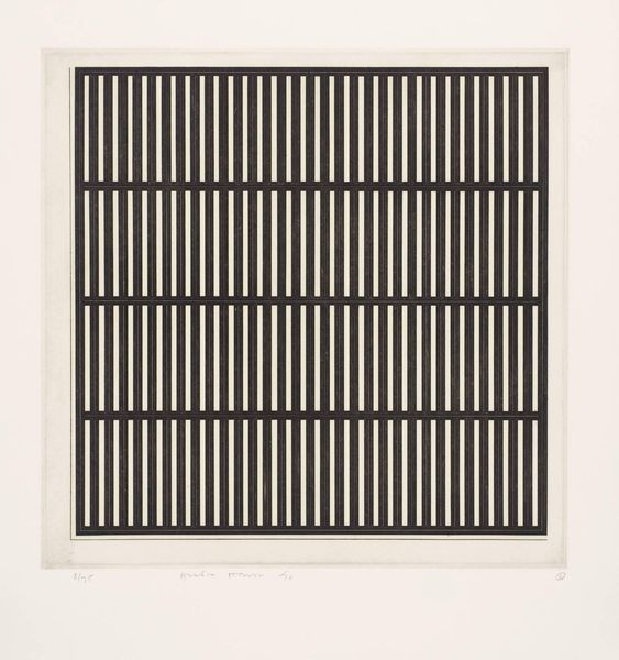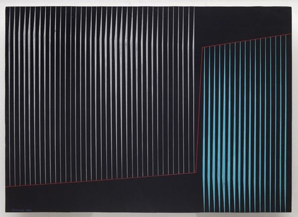 Andrzej Nowacki created "18.12.15., Composition with black" using paint to produce an intriguing visual experience. The composition consists of black and white vertical lines which create a structured rhythm across the square canvas, invoking a sensation of order. The lines in the middle section deviate from the strict vertical arrangement seen above and below, and introduce a contrasting, undulating pattern. This break in linearity invites us to question our perception of order and chaos. The systematic placement of lines across the canvas explores the language of signs, each line acting as a stroke in a larger visual syntax. The work engages with post-structuralist ideas, challenging the stability of meaning and highlighting the fluidity inherent in visual language. The black and white palette heightens the sense of contrast and tension, emphasizing the structural elements at play. The interaction between the straight and curved lines destabilizes any fixed interpretation, reflecting broader philosophical inquiries into the nature of reality.