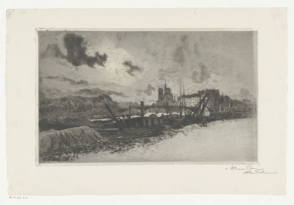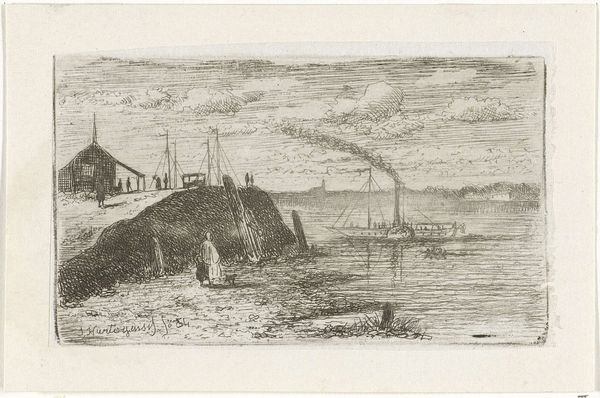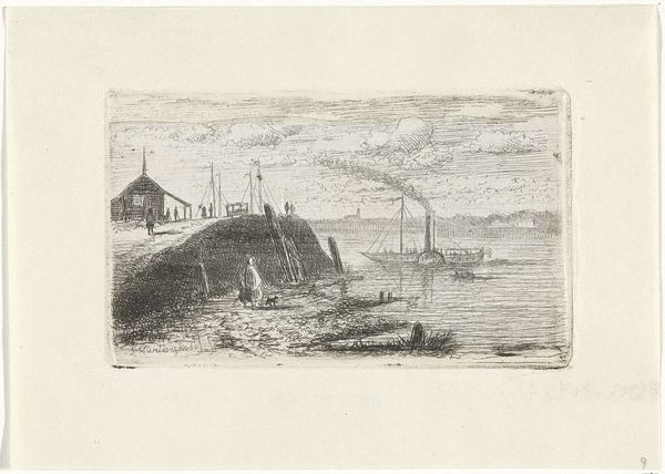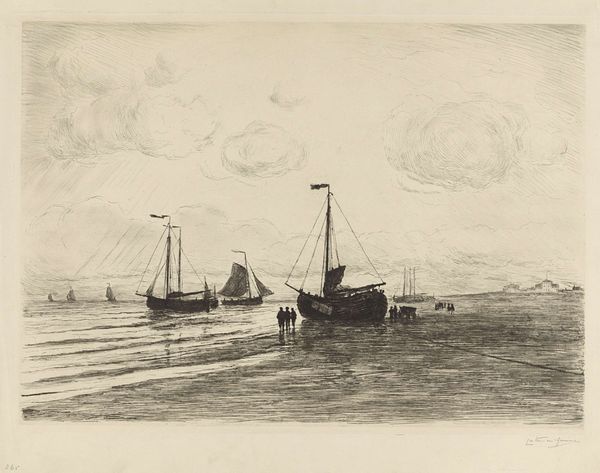 Gerard Jan Bos created this small monochromatic print of a riverside scene, depicting a harbor with boats and figures. The masts of the ships reach skyward like the spires of cathedrals, echoing a timeless yearning for connection. Throughout history, the image of the ship has been a powerful symbol, a vessel carrying not just cargo but also dreams and fears, and representing the journey of life itself. We see echoes of this in ancient Egyptian funerary boats, transporting souls to the afterlife, or in the ships of Viking burials, symbols of passage and hope. The subconscious mind, ever attuned to primal symbols, recognizes in these boats both the promise of adventure and the threat of the unknown. Note how the figures are silhouetted, almost faceless, emphasizing the universal human condition, forever embarking on voyages into the uncertain future. The riverbank persists as a liminal space, a boundary between the known and the unknown. As we contemplate this image, we tap into a deep well of collective memory, a shared human experience of navigating the currents of time and change.