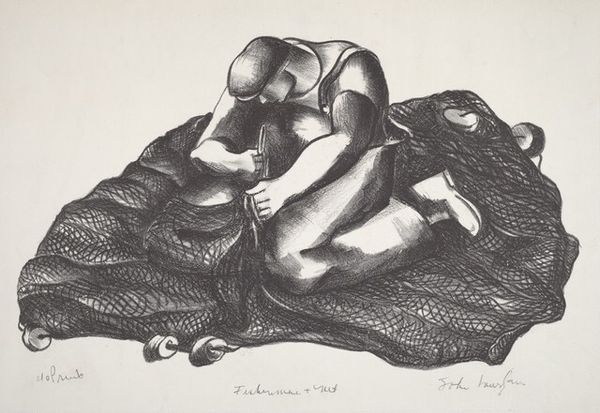Curator: Let’s discuss William Spratling's charcoal drawing from around 1932, titled "Niño." The print portrays a nude child, lying down, resting their head in their hand. Editor: It has this immediately melancholic feel, doesn't it? The charcoal creates a softness, but the posture—prone, almost withdrawn—speaks of something heavier than just youthful contemplation. Curator: Absolutely. Consider how childhood, across cultures, is often symbolized by carefree innocence. Yet here, that ideal is subtly challenged. Spratling lived and worked in Mexico, part of a generation grappling with evolving national identities. This child might echo deeper anxieties. Editor: I’m intrigued by that contrast – innocence versus anxiety. What social messages could he be pointing to, especially given Mexico's social climate in the '30s, still wrestling with the aftermath of revolution? The choice of a child almost makes it more poignant, like the promise of a new nation weighed down by past burdens. Curator: And it’s not simply a portrait; it borders on a representation of vulnerability. Think of how representations of children have been deployed to evoke pathos, solidarity or even, tragically, as an indictment against societal failings. Editor: Definitely. And looking closer at the figure itself—the way the body seems both relaxed and tense—do you think this could also reflect the societal expectations placed on young boys even then? Curator: It's plausible. The way the artist manipulates light and shadow does emphasize the child’s musculature even at a young age, subtly suggesting future roles and responsibilities already being projected onto him. It certainly steers away from a simple idealized depiction. Editor: I appreciate how the image compels us to consider what we expect, what we demand, even from those just entering the world, reflecting power structures that go beyond just the image. Curator: It's a testament to how an image can be both delicate and potent. Editor: Exactly. Art as an act of cultural reflection, and as an agent for change, even in a simple image.