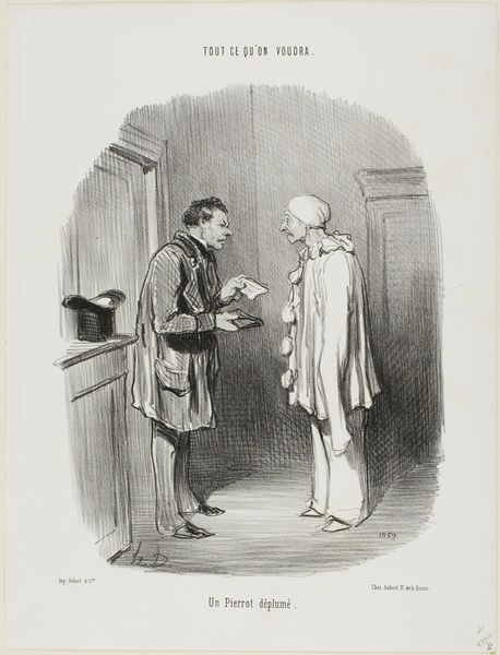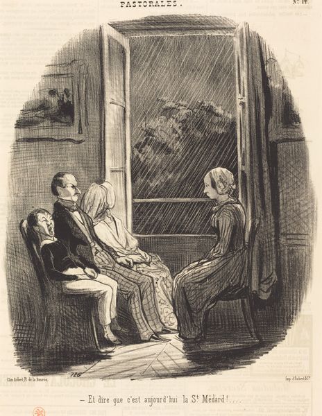 Honoré Daumier's drawing, "L'Entrée dans la vie," captures a fraught moment with masterful use of line and shadow. The composition is built upon a stark contrast: the dark, angular figure of the doctor presenting the newborn, versus the apprehensive father-to-be, softened and rounded by the artist's sensitive strokes. Daumier's focus on form imbues the scene with a sense of sociological weight. The father’s downcast gaze, framed by his slouching posture, speaks volumes about anxieties surrounding new life. The drawing’s semiotic power comes from these stark visual juxtapositions. The way the artist manipulates light and shadow directs our attention, influencing how we interpret each character's role. Ultimately, Daumier uses these formal techniques to open a dialogue about social and existential themes, reminding us that art's meaning is never fixed, but always subject to interpretation.