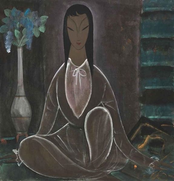 Editor: This painting is titled *Young Southern Girls* by Lin Fengmian, painted in 1980. It strikes me as an interesting blend of modern styles with, perhaps, traditional Asian aesthetics. The figures are so stylized. What do you make of it? Curator: It sings to me of contrasts, doesn't it? There’s this definite Neo-Expressionist brushstroke married to something far older, more serene. These girls... their faces seem almost mask-like, yet there’s a soulful vulnerability. Perhaps it speaks to the tensions between tradition and modernity, something Lin Fengmian explored a lot, having studied in Paris early in his career. Do you find that the vibrant color palette distracts or enhances this feeling? Editor: That's interesting. I think the colors actually enhance that feeling! They almost clash, which adds to that sense of tension. Curator: Precisely. And note the title. "Southern Girls" suggests a geographical and cultural context, doesn't it? Think about what that might mean, placed against this vibrant yet somehow unsettling backdrop. Does it challenge our expectations? Editor: It makes me think about identity, how artists often mix different styles to express a unique viewpoint on social identity. Curator: Precisely. Art often doesn't give answers, it proposes questions, reflects and refracts realities and beliefs. This work speaks quietly, but there’s a scream lurking beneath the surface, wouldn't you agree? It’s unforgettable, wouldn’t you say? Editor: Absolutely! It really makes you think. Thanks for your insights! Curator: And thank you. Looking at art together always enriches the experience, sharpens our awareness, opens our hearts to what we do not understand... until now.