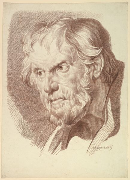 Editor: Here we have Jakob Matthias Schmutzer's "Head of a Bearded Old Man," created around 1804 using graphite. The expression seems so intense. What do you make of it? Curator: Well, given its creation during the Romantic era, this work demands that we consider the era's socio-political climate, as it’s awash in conflicts and upheavals. We're in the wake of revolutions; systems of power are challenged. How do you think this man's gaze and countenance speaks to those disruptions? Editor: I guess he looks kind of defiant? Like he's seen things and isn’t backing down? Curator: Exactly! Notice also how Schmutzer, although a master of detail and form, highlights imperfections—the furrowed brow, the weary eyes. This might speak to the era’s shifting gaze toward authenticity and an embrace of human flaws challenging Neoclassical idealism and aristocratic artifice. Does this give you a different perspective on what Romanticism tried to represent? Editor: It does! I always thought Romanticism was just landscapes and dramatic nature scenes, but the human element makes it much more compelling here. Is he supposed to represent someone? Curator: Perhaps. The "common man," a figure of resistance, wisdom rooted in experience rather than birthright. In 1804, celebrating such a figure, especially with that kind of unflinching gaze, becomes a powerful commentary on the period's changing values. Editor: I never thought about art from that period in terms of class or revolution. I see this drawing in a new light! Curator: And hopefully a call to see other artworks through similar socio-political lenses. History isn't just dates, it's the blood that made them. Editor: I'll definitely keep that in mind moving forward!
