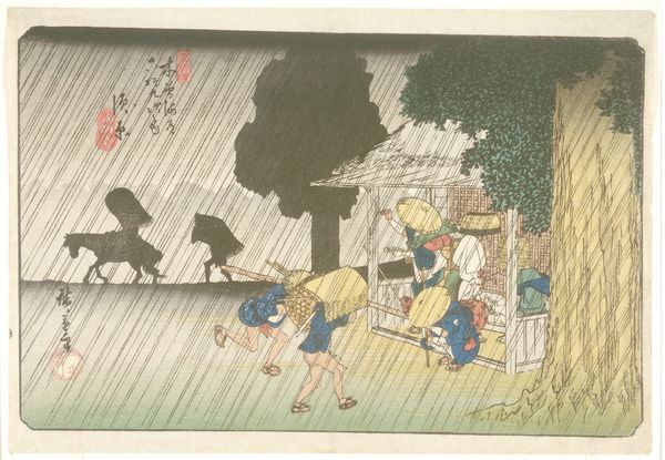 Utagawa Hiroshige’s woodblock print captures a sudden downpour, with travelers caught between shelter and the road. Made in Japan, in the mid-19th century, Hiroshige's print was part of a popular series called "One Hundred Famous Views of Edo." These prints, sold to a broad public, reveal much about the culture of the time. The image uses a visual code that balances the beauty of nature with the realities of everyday life. Note how the sudden rain contrasts with the calm of the travelers taking shelter. Japan’s geography and climate certainly influenced the choice of the subject, as did the growing urbanization of Edo. It's worth remembering the institutional context of these prints, which were made within a complex system of publishers, artists, and woodblock carvers. The art wasn’t just a reflection of society, but a commodity within it. As historians, we might look at travel logs, weather reports, and publishing records of the time to understand the full meaning of this image, appreciating art not as an isolated object, but as a product of specific social conditions.