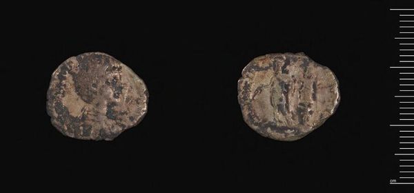 Editor: Here we have a very small coin from Trier, a "Fraction of Maximian", attributed to Maximianus I Herculius. It's weathered and worn, but the images still feel strong and symbolic. What do you see in this little piece? Curator: It's wild to think this held value, wasn't it? The weight of an empire in your palm. I see a story of power, resilience, and the human need to leave a mark, even on the smallest things. A tiny monument. Editor: That's a lovely way to put it! "A tiny monument." I'll remember that. Curator: Yes, a reminder that grand narratives are often built from the accumulation of these minute, everyday objects. A whisper of history, if you will.