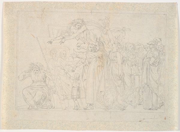 Curator: "The Lamentation," a pencil drawing by Johann Friedrich Overbeck, dating from around 1840. It’s housed at the Metropolitan Museum of Art. It feels almost ethereal, a ghostly vision rendered in delicate lines. I'm intrigued by its understated approach. What stands out to you? Editor: The interesting thing, for me, is its existence as a drawing, almost like a blueprint for a larger work perhaps, given its classical subject matter. I wonder about Overbeck's choice of pencil, a relatively humble material, for such a profound scene. Why not oil, or even fresco? Curator: Precisely! Pencil allows for a specific kind of mass production. Drawings, especially in this period, were easily reproducible as prints and were key to circulating and standardizing religious iconography. Consider, what does this say about the accessibility and democratization of religious art in the 19th century, and how might that differ from the artistic and cultural context surrounding, say, a Renaissance altarpiece? Editor: That's interesting; I never considered its accessibility in terms of its reproducibility. Does that shift the understanding of the artwork itself – less as a singular masterpiece and more as a readily available commodity? Curator: Yes. Overbeck's choice moves this work out of the sphere of purely devotional objects. It becomes a widely disseminated image, consumed and reproduced by a broad audience. Look closely – can you discern a sense of idealized beauty but also a practical, almost instructional, aspect in its clear lines and narrative composition? What materials, and production means are important to religious imagery? Editor: It's almost like a piece of sheet music, intended for broad distribution and interpretation. I had focused so much on its aesthetic qualities and missed its role within the social and economic fabric of the time. Curator: Exactly. Understanding art through its materiality reveals the intricate connections between artistic practice, social conditions, and the prevailing modes of production. Next time you see a "simple" pencil drawing, ask yourself: What kind of work went into it? Editor: I will certainly remember that!