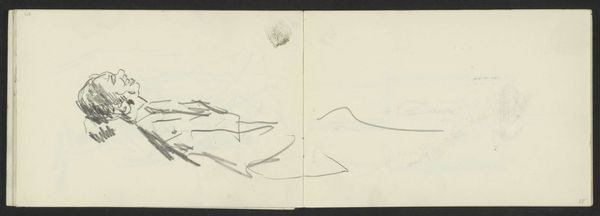Curator: This is "Paardenkar op een pad en een hut," which roughly translates to "Horse cart on a path and a hut," by Willem Cornelis Rip. It's likely from between 1866 and 1922, and we see it rendered in pencil. Editor: Immediately, I am struck by how skeletal it feels. Both the horse cart and the hut on the right side feel fragile, almost ghost-like, as though they're fading from memory. Curator: I see what you mean. Perhaps Rip was trying to capture the fleeting nature of a memory, like a quick sketch to hold onto something before it disappears. A path and a humble hut represent so many people’s homeplace, and horses are symbols of travel but also agricultural labor and the common life. Editor: Right. The image seems to grapple with labor, class, and landscape. Carts were essential for moving goods but were also indicative of a rural lifestyle in tension with burgeoning urban spaces. It evokes a time of significant social and economic transition. Curator: And you're speaking about it being drawn, there's a feeling of impermanence because it is simply rendered in pencil, like something quick in a sketchbook— it captures that moment and preserves that type of symbolic cultural representation as a result. The choice of subject – a simple cart, a humble dwelling—resonates, particularly because of how they function symbolically in a visual shorthand, to use your phrasing. Editor: Indeed. This work highlights the transient nature of existence for marginalized groups in society as the world began shifting with more industrialized technology. What once felt like a given became ephemeral, and maybe, here, even traumatic. What stories do we lose when a way of life vanishes, and is memorialized with humble graphite and paper? Curator: Well, seeing these symbols, the home, the journey… it evokes the universal need for security, movement and purpose— elements that remain poignant across temporal shifts. The simple style draws our attention to the fact that at their core these symbols are what constitute society, but it may just take some art and insight to expose them as much. Editor: Exactly. I see it as a powerful reminder of the everyday realities that often get overlooked. We must stay grounded and never lose our human roots in even the smallest of gestures of representation.