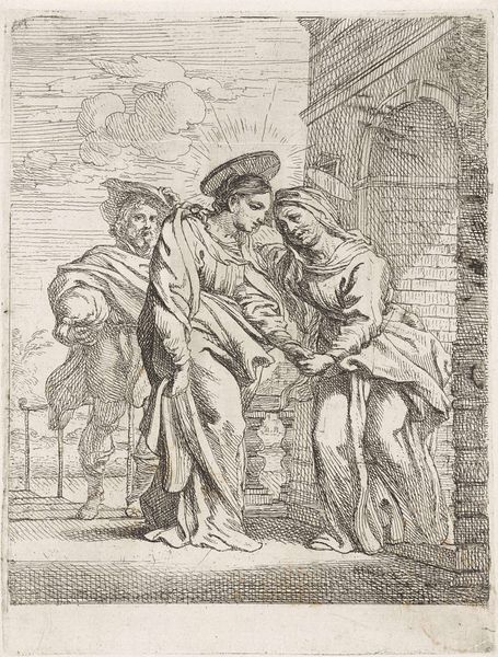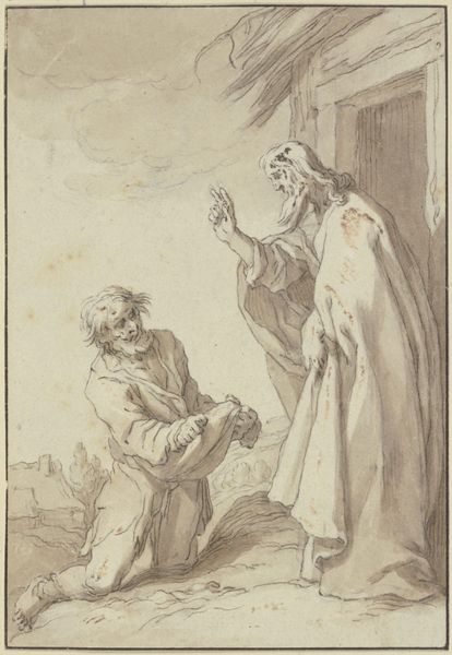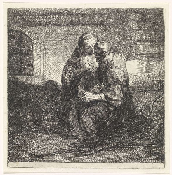 Bernard Picart crafted this drawing, “Roman Charity,” around 1726. It depicts a scene laden with symbolic weight: an old man, chained and imprisoned, is being nursed by a woman, presumably his daughter. This image is a version of the classical tale of Cimon and Pero, a powerful emblem of filial devotion, where a daughter secretly breastfeeds her incarcerated and starving father. The act transcends mere sustenance; it's a profound statement about the life force, the nurturing power of women, and familial duty. The chains bind more than just Cimon’s body; they represent the constraints of societal norms, challenged by Pero’s defiant act of love. Consider other "lactation scenes" in art history, such as the many depictions of the Virgin Mary breastfeeding the infant Christ, or the Caritas Romana as it appears in different contexts. Note how this act—deeply instinctual—resonates across centuries, echoing themes of sacrifice, nurture, and the subversion of power. This resonates, perhaps, with humanity's primal need for connection, defiance, and the cyclical nature of life and sacrifice.