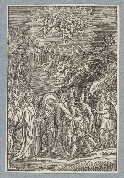 This woodcut, made by Christoffel van Sichem II, depicts Christ carrying the cross, surrounded by others similarly burdened, under the watchful gaze of God in the heavens. The most potent symbol here is the cross, an instrument of torture transformed into an emblem of sacrifice and redemption. We see its echoes in various forms across cultures, from ancient solar crosses to modern-day religious symbols. The act of carrying the cross is an emotionally charged motif. It recurs in art history, symbolizing suffering, atonement, and spiritual burden, deeply rooted in our collective consciousness. This image is evocative, engaging our subconscious understanding of suffering. The cross, heavy and burdensome, mirrors our own emotional burdens. In turn, this speaks to our deepest fears and hopes, a cycle of despair and redemption that continues to resonate through time.