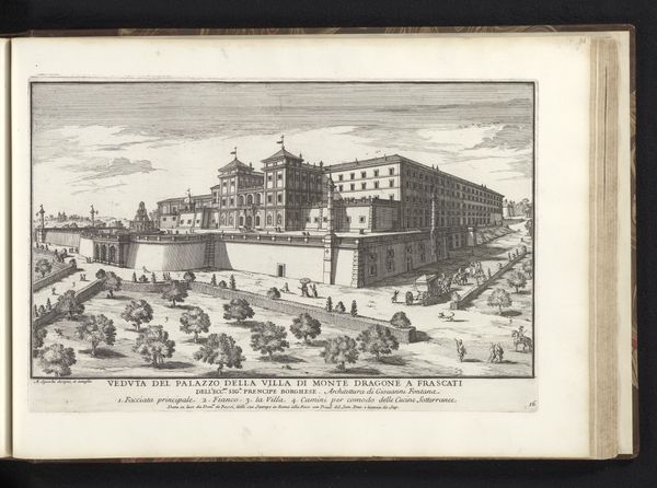 Curator: Let's discuss this print by Adam Perelle, titled "Gezicht op de façade van de Tuilerieën," which roughly translates to "View of the facade of the Tuileries," created sometime between 1660 and 1695. Editor: My immediate impression is one of bustling activity, but rendered with such rigid, almost mathematical precision. The facade dominates, but it's the intricate patterns of movement below that really capture the eye. Curator: Absolutely. Consider the historical context—this image wasn’t just a landscape. The Tuileries represented the absolute power of the French monarchy under Louis XIV. This print, circulating widely, broadcast that power to a broad audience. The ordered activity is not just incidental; it reinforces the sense of control and grandeur. Note the architecture itself, the carefully positioned windows, and the dome, creating visual hierarchies of power. Editor: From a formal perspective, I’m drawn to the use of line. It's incredibly detailed, almost obsessive in its rendering of architectural elements and the figures. Look at how the artist uses hatching and cross-hatching to create a sense of depth and volume, especially on the façade. Curator: And that relates directly to the social implications. The architectural details were not merely aesthetic choices. The opulence, the scale – all functioned as signs of divine right, a visual language intended to impress and, frankly, intimidate. Furthermore, this viewpoint isn't neutral; it’s positioned to emphasize the dominance of the palace. Editor: True. The composition is very controlled. There's a clear foreground, middle ground, and background, each meticulously delineated. It directs your eye to follow a certain path, always leading back to the palace itself. I wonder if this was produced to be included in larger projects to consolidate the King's identity. Curator: Exactly! This image reinforces the status quo, embedding itself within a complex network of cultural production designed to sustain the King's image. Understanding it allows us insight to the power structures of the 17th century. Editor: Ultimately, it’s this tension between artistic technique and the embedded ideology that makes this seemingly straightforward cityscape so compelling. Curator: Agreed. It’s a testament to how even seemingly objective representations can be powerful vehicles for conveying specific cultural and political messages.