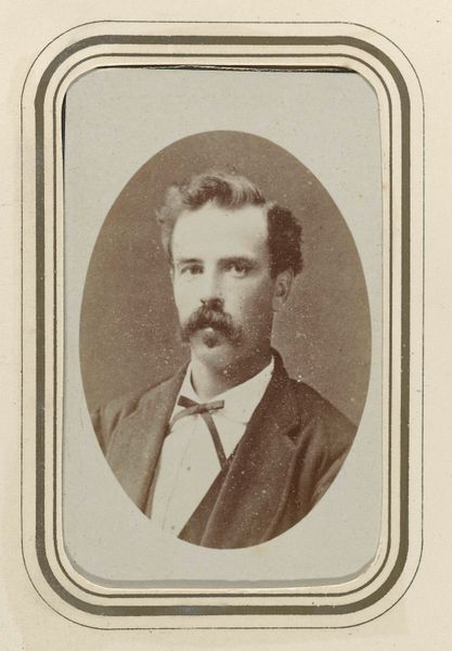 Editor: Here we have "Portrait of Abraham Willet," a gelatin-silver print, created sometime between 1865 and 1880 by Theodor Brüggemann. It has a strangely haunting presence despite its small scale. What aspects of this portrait grab your attention? Curator: As a materialist, I'm fascinated by the context surrounding the production of this gelatin-silver print. Think about it: photography in this period was rapidly evolving, democratizing portraiture but also becoming a powerful tool for documentation and social control. The use of gelatin-silver, a relatively new process, tells us about technological advancements in image-making, impacting art and visual culture at large. Editor: That's interesting. I never considered the technology itself as being significant. How would the advancements change the field of art in particular? Curator: Well, the relative affordability and reproducibility of photographs threatened traditional forms of portraiture. Suddenly, painted portraits were no longer the sole domain of the wealthy. This shift spurred debates about photography's status as "art" versus a mere mechanical reproduction and prompted artists to experiment with new materials, processes, and conceptual frameworks. What implications did it have on class structures? Did photography alter them? Editor: I guess photography became available to more people outside of the elites. But it may also have just been absorbed into the power structures. Curator: Precisely. Now, consider how someone like Abraham Willet—likely a member of the burgeoning middle class given the period—engaged with this technology to construct and disseminate his image. We have to examine this artwork as a material object embedded within specific economic and social relationships, from the photographer's studio to the viewer's gaze. It encourages a deeper understanding. Editor: It makes me appreciate how technological and cultural changes shaped this artwork. It's more than just a portrait; it’s a material document reflecting a society in transition.