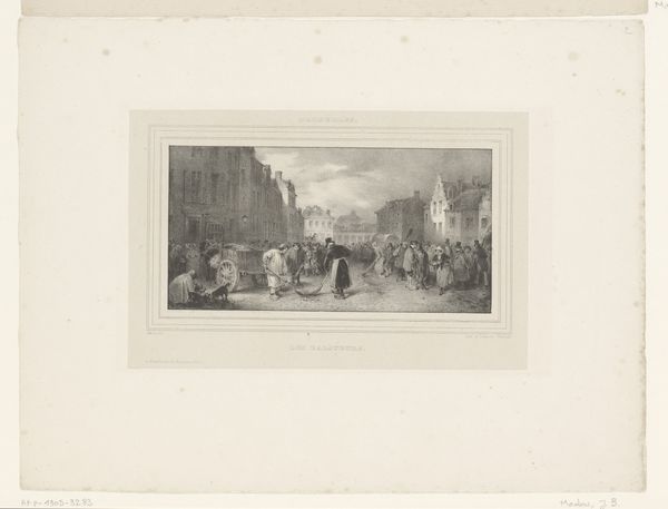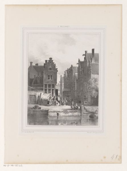 Editor: This is "Kleding wassende vrouwen in Straatsburg," or "Women Washing Clothes in Strasbourg," created between 1833 and 1834 by Samuel Prout. It’s a print on paper using pen and other drawing techniques. I’m struck by the contrast between the detailed architecture and the more rough depiction of the women at work. What stands out to you? Curator: What interests me is the labor on display. The print emphasizes the communal act of laundry, a necessary and physically demanding task. Prout presents this through the meticulous process of printmaking, thereby elevating a mundane activity. How does this juxtaposition affect your perception? Editor: It makes me think about the artist’s choices. Why highlight this specific labor? Is it social commentary or just observation? Curator: Perhaps it's both. Consider the time. The piece gives a snapshot of urban life amid industrial shifts. Prout draws attention to the persistence of traditional practices. How the laundry is being done and how they are drawing the water is a laboring intensive job. Also, it makes one wonder how they negotiated with the use of shared resources. The city looks as if it looms above the workers, an ever constant witness. Is Prout celebrating or lamenting this reality through his detailed depiction of the material conditions of their work? Editor: So the very act of creating this detailed print forces us to think about the materials, the labor of the women washing, and Prout's own artistic labor? Curator: Precisely. By translating their work into art, he transforms a fleeting moment of production into something permanent, urging reflection on the lives behind it. It captures not just the scene, but the social fabric woven by work. It speaks to the consumption and class system by presenting an unvarnished version of daily routines. It isn't beautiful in the typical Romanticism way, yet holds value due to the artistic representation. Editor: That makes me appreciate the layers of meaning in this seemingly simple scene. I never would have considered how much the process itself speaks to the subject. Curator: Seeing art through its materials and the work it depicts, or rather captures, adds depth and makes connections beyond just the surface image.