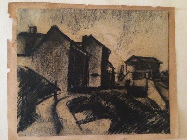 Czobel Bela made this painting in 1927, it looks like it's oil. The way Bela handles tone here is pretty direct. There's not a lot of blending or fussing – it's more about the marks and how they sit together, like a puzzle of darks and lights. The paint itself seems applied with a kind of rough energy, like he's pushing it around to find the image. The surface has a tactile quality, with visible brushstrokes that catch the light. Look at the buildings, how they lean in towards the centre like they might fall over. The darkness around the figures gives them a sense of drama, of being caught in a specific moment. You can really sense the artist working, reacting, and wrestling with the medium to create something both solid and fleeting. This reminds me a little of Kokoschka, but Bela has his own way of seeing things. Art’s an ongoing dialogue, right?