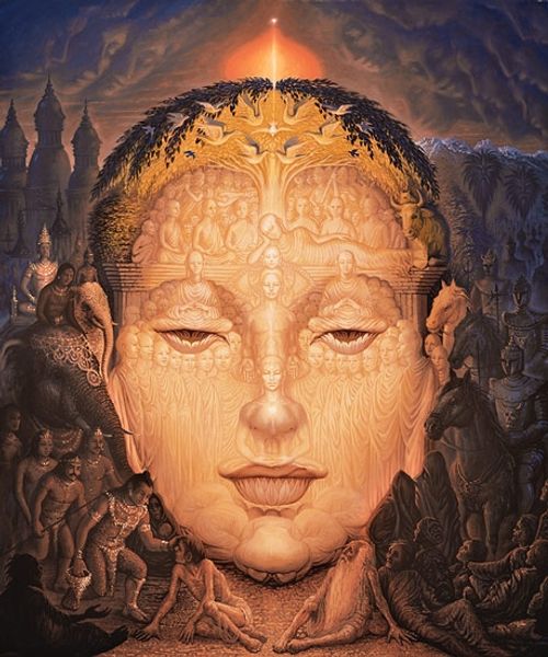 Curator: Here we have Vsevolod Maksymovych's painting "Fairy Tale Princess," crafted with tempera on, what appears to be, textile. What are your initial thoughts? Editor: Wow. That is... intense. My first impression is overwhelmingly red—a crimson haze. It's dramatic and a little unsettling, like a half-remembered dream or a theatrical scene lit too harshly. Curator: I'd agree on the intensity. Thinking of historical paintings and fairy tale narratives, the artwork certainly prompts an intersectional consideration of power and representation. Who is allowed to be a princess? What constraints and expectations are attached? Editor: It does feel constrained. She’s surrounded, almost consumed, by the redness and these shadowed figures lurking in the background. It’s far from the Disney ideal, isn’t it? More like a cautionary tale. There is a dark beauty in the layering effect on her red dress and around her figure; how was this effect created? Curator: Tempera allows for layered pigment application. Also, textile as the foundation gives it a slightly blurred finish and provides insight into craft production versus the fine arts. There may be interesting conversations concerning material labor here, who crafted these clothes, or for whom the depicted stories and images cater? Editor: Exactly! And, you know, it’s making me think about the theatricality of royalty in general. Aren't they always playing a role? All this heavy, ornate costuming, the elaborate backdrops… it’s a performance of power. Even in paintings like these it seems. I’m especially drawn to the subjects peering over the princess's shoulder. They almost seem jealous and maybe ready to dethrone her! Curator: A very potent interpretation, reflecting the struggle within and for power, isn’t it? Perhaps, in rethinking familiar and assumed images and materials of a "fairy tale princess", the artist urges us to acknowledge that representation always involves, and sometimes inflicts, a kind of violence. Editor: Well, thinking about it, maybe all fairy tales involve violence in some way or another, no? Makes one really want to rewrite them. Thanks for revealing the context of such a thought-provoking piece! Curator: Likewise! Thank you for offering your insights.
