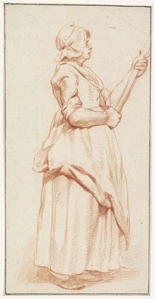 This pencil drawing of a standing woman with a basket on her head was created by Pieter van Loon in 1840. In the 19th century, it was common to see women performing labor-intensive tasks such as carrying heavy loads. This drawing offers a glimpse into the life and labor of working-class women in the Netherlands during this era. Van Loon's choice to depict this woman highlights the often-overlooked contributions of women to the economy and society. The weight of the basket suggests the physical demands placed on women, who were frequently responsible for both domestic duties and external labor. The woman's steady gaze and posture, however, also communicate resilience. While Van Loon's drawing is representational, it invites us to reflect on the intersections of gender, class, and labor. It captures a moment in the life of a woman whose daily efforts shaped the social and economic landscape of her time.