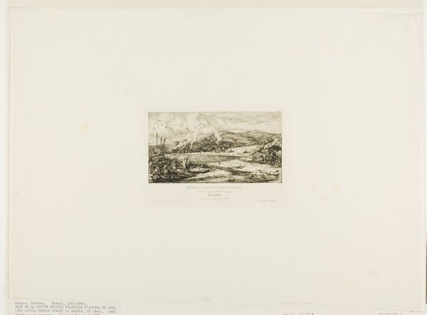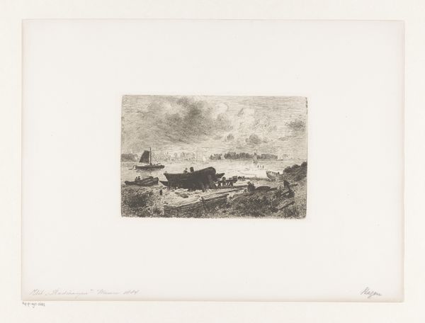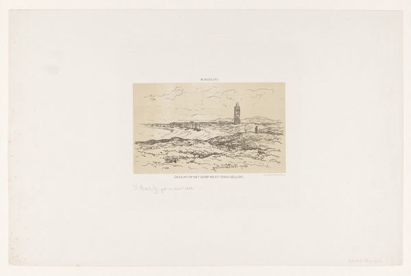 Willem Roelofs created this etching titled 'Gezicht in Oost-Vlieland' at an unknown date. The landscape pulls us in, guiding our eye along a subtly rising diagonal plane. Roelofs masterfully uses etching to evoke a mood that transcends mere representation. Look at how he articulates the scene through a network of fine lines and subtle tonal variations. These elements work together to create a sense of depth and atmosphere, making the landscape almost palpable. The sketch style lends a sense of immediacy, as though Roelofs captured a fleeting moment. The linear structure suggests a landscape caught in a state of flux. The lines and their arrangement seem to question the stability of the natural world. This work is not just a depiction of a place, but an investigation into the very act of seeing and representing the world.