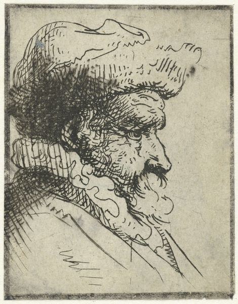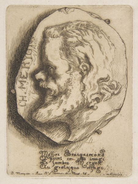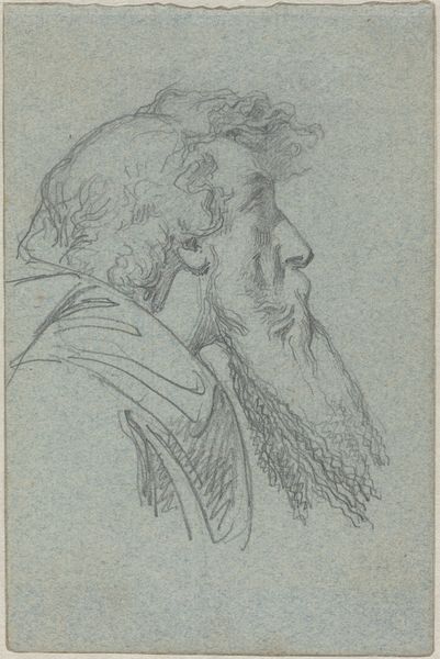 Editor: This is "Head of a Bearded Man Looking Right," a graphite drawing from 1692 by Mathais Füessli the Younger, currently held at the Met. There's an intensity in his gaze that's quite compelling, but something about the way he’s framed by this circle makes me feel a little claustrophobic. How do you interpret this work? Curator: It’s interesting that you mention feeling claustrophobic. I see that circle not just as a frame but as a kind of isolating spotlight, underscoring the social pressures individuals faced, especially men, within the power structures of the late 17th century. Editor: Interesting... in what way? Curator: Think about the rise of absolutism, the control exerted over individuals’ lives. This man, frozen in this circular frame, seems to bear the weight of societal expectations, his expression perhaps hinting at the internal struggle between individuality and conformity. Consider the meticulous detail in his beard—does that imply a certain level of enforced self-presentation and performance? Editor: That's a completely different reading than I had! I was only reacting to the composition and that makes a lot of sense. So this is less about the individual and more about what the patriarchy demands from them? Curator: Precisely! We can see this portrait as a product of its time, reflecting broader socio-political anxieties and constraints. Understanding the era helps us understand what is *unsaid* in this drawing. Editor: That's a really thought-provoking way to look at it. Thank you. I will remember this during future museum visits! Curator: It was my pleasure; this just reinforces that our dialogue helps reveal even deeper truths in artwork.