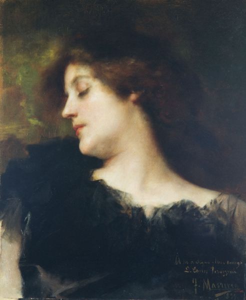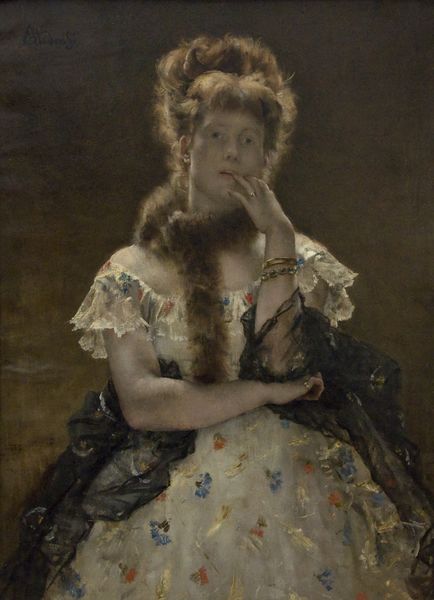Giuseppe de Nittis painted "A Lady from Naples" in Italy using oils. It presents a woman who is both present and absent, her gaze directed to the side. The quick brushstrokes and subdued color palette suggest a moment captured, but what moment, and for whom? Painted during the Italian unification, this work reflects Naples' complex identity, caught between its rich past and the uncertainties of a unified future. The woman’s clothing indicates a certain social standing, yet the painting lacks the formal rigidity often found in commissioned portraits of the upper classes. De Nittis was associated with the Macchiaioli group who contested the academic style favored by art institutions, reflecting a broader shift towards realism and a desire to capture modern life as it was lived. To truly appreciate such works, we must consider the social dynamics of 19th-century Naples, referring to sources such as period literature, social histories, and exhibition reviews. This painting, like all art, is as much a product of its time as it is a creation of the artist's hand.