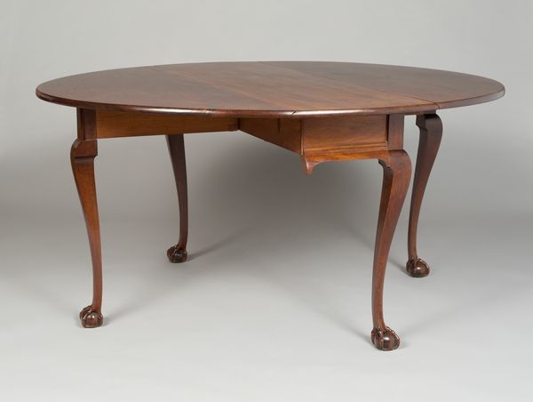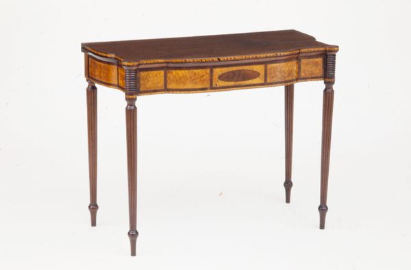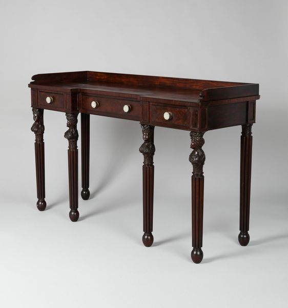 Curator: Here we have an example of decorative art. It's an elegant card table that dates from around 1800 to 1815, currently residing here at The Art Institute of Chicago. The maker of this wood furnishing remains unknown to us. Editor: My immediate impression is that the artist strived for symmetry. The slender, fluted legs add a delicate height that contrasts strangely with the stout top of the table. It looks poised, as though waiting. Curator: You've picked up on the stylistic cues! This table fits into the Neoclassical period. Looking at the piece, one can imagine it being made and used in a time of intense social and political upheaval; remember the French Revolution and the Napoleonic era, so rife with ambition. This little piece provides a strange window into those spaces of momentary retreat. Editor: I agree; the table speaks volumes about social status. Gambling, like any hobby, wasn't accessible to everyone; those slender legs literally stand on privilege, a support to gendered assumptions and coded power games of leisure. Curator: Yes, absolutely. Social ritual and status are so important when interpreting pieces like this. Its physical presence helps us consider the environments where decisions were being made around this table and how they affect current power structures. This table stood witness to societal changes. Editor: The material is so telling too. The selection of wood, the craftmanship... it speaks to exclusivity. Think about all the untold conversations held, all the decisions perhaps impacting enslaved peoples, that would have occurred right here. It's so easy to romanticize the object. I think it important that the table is read with critical awareness to how it participated in the power structures. Curator: I see what you mean. It allows a connection across time. Looking at a piece like this from a historical context shows how objects like this not only occupied but also shaped our culture. Editor: Examining this object forces me to consider the role of material culture in legitimizing and maintaining unequal power dynamics, prompting much needed difficult conversation and actions against injustice.
