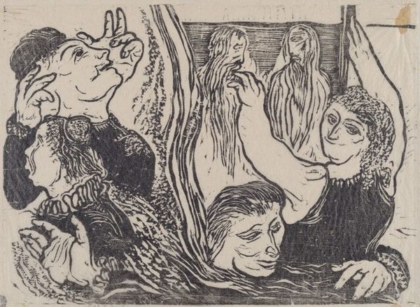 Bernard Reder created this print, "Les droits doux de Gargantua: Le chateau des cartes," which translates to "The sweet rights of Gargantua: The house of cards," using an etching technique. Made in the early twentieth century, this artwork draws inspiration from the writings of Rabelais, but also evokes a specific cultural milieu. The house of cards serves as a metaphor for the fragility of social structures, particularly relevant in a period marked by political upheaval and economic instability in Europe. Consider the artist's background: Reder, a Jewish artist who eventually emigrated to the US, likely felt the precarity of institutions and the rise of antisemitism. To fully appreciate this work, one might delve into the history of printmaking as a medium for social commentary, and examine the role of artists in critiquing power structures. What emerges is a richer understanding of the complex relationship between art, society, and historical context.