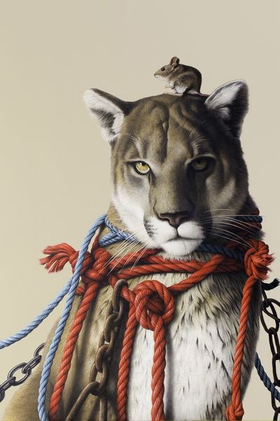 Eckart Hahn made this painting titled Roter Faden. I love how Hahn builds up this image of a tiger with a kind of hyper-realism that then veers off into something much more strange. This tiger is beautiful and precise, a real masterclass in observation and technique. But look closer and you notice the red rope, which is kind of binding it. The rope makes the tiger into something more like a puppet, with the suggestion of a human face contained inside its own. There’s a push and pull here between realism and surrealism that’s really intriguing. It reminds me of Magritte, but with a contemporary twist. Hahn is playing with ideas of control and identity. What does it mean to be bound or defined by something external? It leaves you with more questions than answers, and that’s what makes it so compelling.