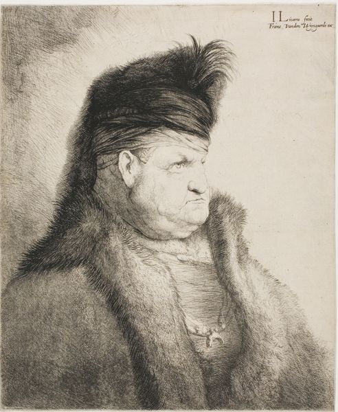 Jan Lievens made this etching, "Bust of an Oriental with a Fur Hat," sometime in the 17th century. During this time, the Dutch Republic was expanding its global trade networks, leading to increased encounters with, and representations of, people from different parts of the world. The term "Oriental" itself is a product of this era, reflecting a Western perspective on Asia and the Middle East, often imbued with stereotypes. Here, Lievens depicts a man in what appears to be "exotic" attire, likely based on limited encounters or second-hand accounts. The fur hat and robe become signifiers of otherness, playing into the European fascination with the "Orient". What does it mean to witness this depiction? Lievens invites us to contemplate the complexities of cultural exchange and representation, and to reflect on the power dynamics inherent in looking at someone marked as different.
