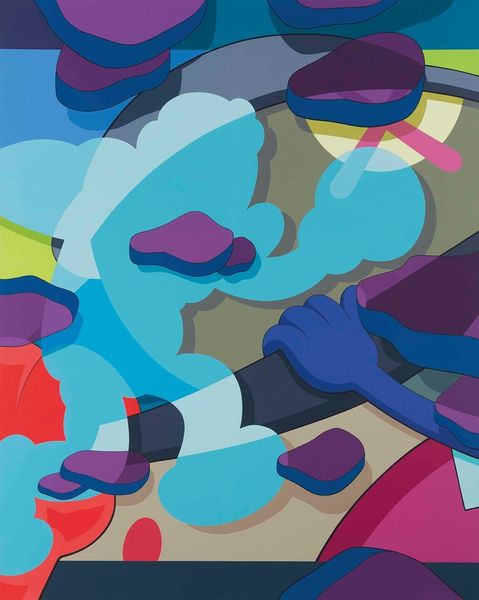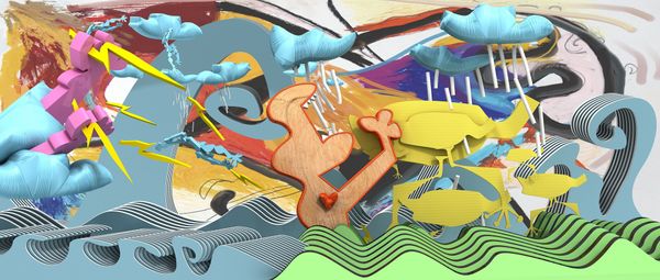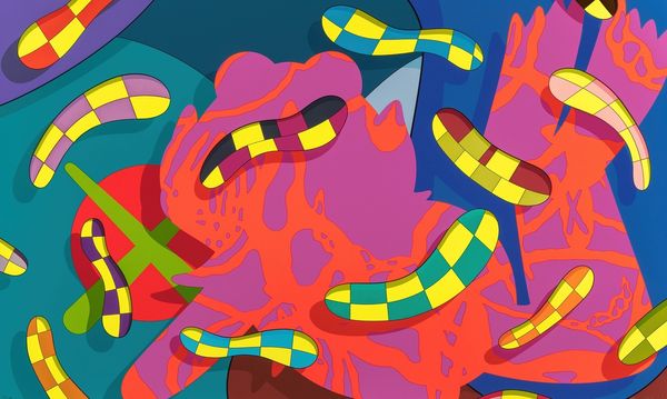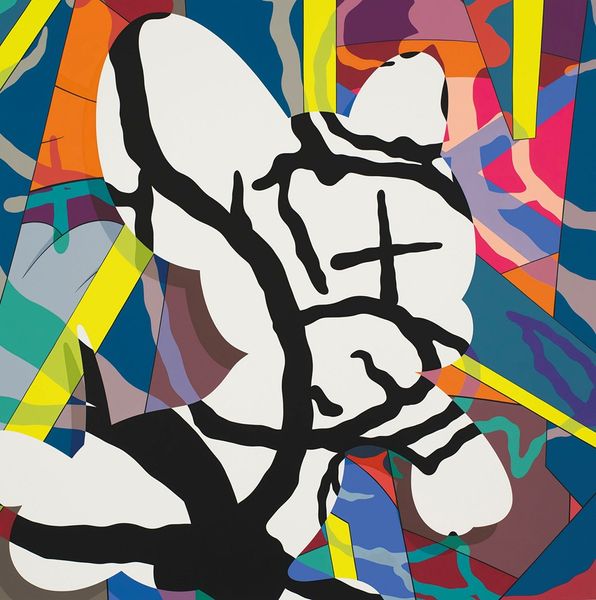 'No Guarantees' was made by KAWS, an artist born in 1974, and while undated, it is clearly an artwork of the twenty-first century. The image shows a distorted cartoon character engulfed by a pile of black blocks with yellow edges. KAWS came of age as a graffiti artist in 1990s New York, a time of intense debate about public and private property and the right to create art in the public space. His background in street art shines through in his appropriation of popular cartoon characters and his preference for bright, bold colors and simplified forms. His work can be understood in the context of the rise of consumer culture and the increasing importance of branding and identity. The title, 'No Guarantees,' could be interpreted as a commentary on the uncertain nature of contemporary life, where nothing is guaranteed and everything is subject to change. To fully grasp the meaning of KAWS's art, we need to consider not only its visual qualities but also the socio-political and economic forces that shape its production and reception. We need to consult exhibition catalogs, reviews, and interviews with the artist.