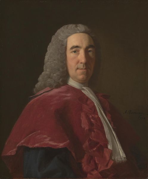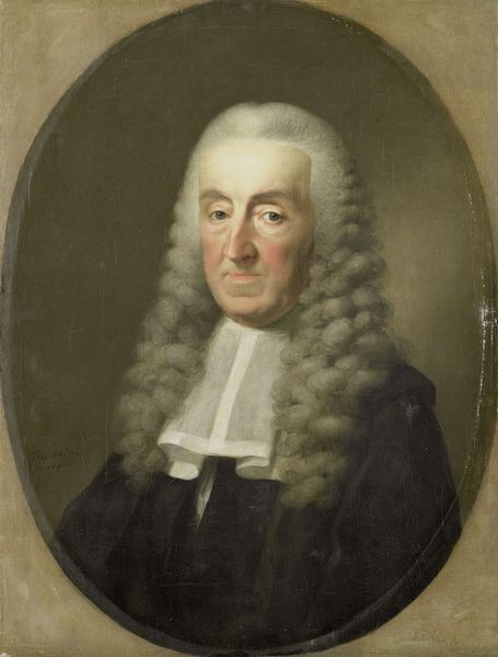 This is an oil on canvas portrait of a gentleman, likely made in England during the 1700s, although the artist is unknown. The gentleman’s dress tells us a great deal about the social and cultural world in which this portrait was made. He wears a large, powdered wig. This was a common fashion among the upper classes in Europe at the time, a visual signifier of wealth and status. The dark coat and white cravat also speak to a certain level of formality and adherence to social norms. He seems to want to present himself as a figure of respectability, and perhaps even authority. Without knowing the sitter, it is difficult to say much more. But the portrait itself stands as a record of the values and aspirations of a particular social class in a specific time and place. To understand it better, we could consult period clothing guides, social histories, or even conduct genealogical research.