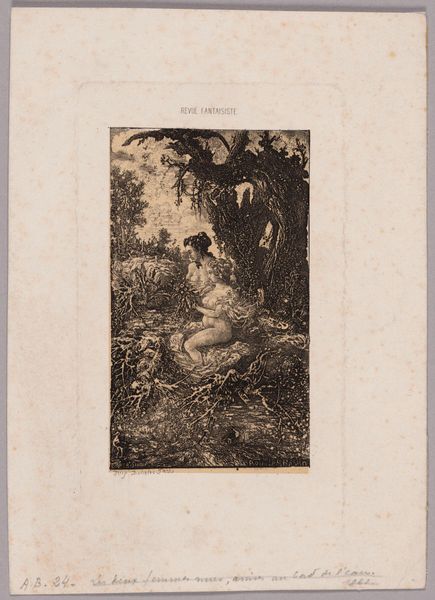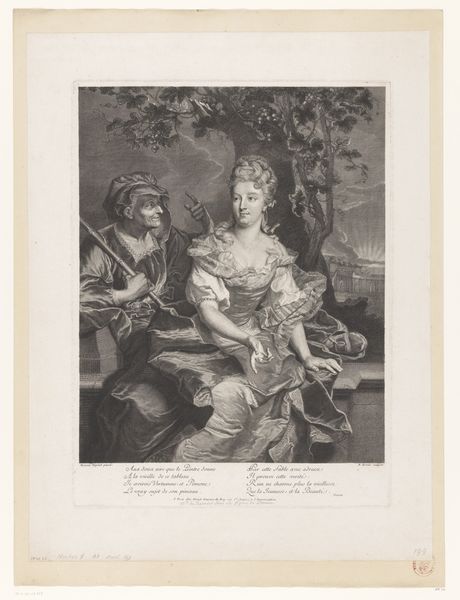This is "Zomer," or "Summer," an undated etching by Nicolas Chasteau, held at the Rijksmuseum. The immediate impression is one of fecundity, framed by lush vegetation. The allegorical figure dominates the composition, a classical goddess rendered with delicate lines. She is adorned with a wreath of wheat, mirroring the abundant sheaf she cradles. The composition uses a play of light and shadow which models her form and clothes. The surrounding foliage –rendered with meticulous detail – creates an enveloping frame. This allegorical representation of summer speaks to deeper cultural values. The goddess embodies not only the season's bounty but also a certain ideal of feminine beauty and abundance. The etching invites us to consider how the structure and composition of an artwork can reinforce cultural and philosophical themes, subtly shaping our understanding of the world.