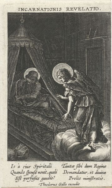 Curator: I’m immediately struck by the stark contrasts in this engraving. The darkness seems to press in around these two figures illuminated by what must be candlelight, but it looks as if there are two distinct light sources, creating almost a visual friction. Editor: Indeed. This print, made by Peeter de Jode the Younger between 1626 and 1674, is entitled "Christ and Nicodemus: A Night Piece." It's an etching and engraving on paper, currently held at the Art Institute of Chicago. The play of light is intentional, drawing heavily on Northern European traditions of chiaroscuro. Curator: Chiaroscuro immediately brings to mind dramatic storytelling— the clear demarcation of good and evil, highlighting the moral and spiritual tension between subjects. I think that contrast, while technically a study of light, heightens the symbolic meaning of the moment captured. We have this intense beam illuminating Jesus and this far more subtle, human light near Nicodemus. Editor: It also hints at the socio-political dynamics at play. Nicodemus, a Pharisee and a member of the Jewish ruling council, comes to Jesus under the cloak of darkness. It speaks volumes about his initial reluctance, maybe fear, to openly associate with someone considered a radical figure. He doesn't want to risk ostracization from his community, and, like many of the upper class, desires a position of power that would crumble when facing social change. Curator: So Nicodemus literally meets Jesus in the dark... yet the encounter is cast with so much symbolic clarity? I'm thinking that for centuries, darkness was frequently employed as an archetype. This could indicate hidden or subconscious desires, potential, mystery, even menace, contrasting that to the promise of "divine" light. The way the two figures seem to have very distinct illumination also says something about Jode's biases. Nicodemus looks far more flawed with shadows cast over the contours of his face while Christ looks almost idealized and inhumanely glowing. Editor: Absolutely. The artist crafts this scene to position Jesus as the sole beacon of truth in a world steeped in tradition and the established social hierarchy that must make way for greater change. The tension in the image mirrors the tension between adherence to old doctrines and acceptance of radical new philosophies in 17th-century Europe and possibly beyond. It’s a conversation between two worlds, each illuminated—or obscured—by its own belief system. Curator: That's an incredible nuance and something that the artist clearly captures through very precise and measured iconographic use. Thank you for offering that lens. It provides new and fresh symbolic life to what could be easily understood only as just another classical work of art. Editor: The pleasure was all mine. This artwork continues to reveal new layers, prompting us to confront timeless themes that connect with present concerns and that push for continued social justice.
