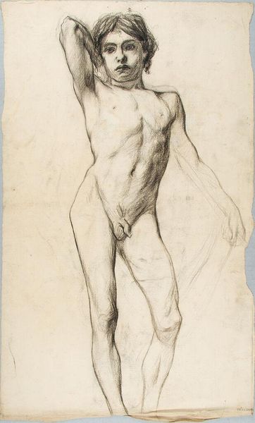 Editor: This is Jacques-Louis David's "Nude Study of Cardinal Caprara," a pencil drawing. It's intriguing to see a figure study laid out on a grid like that. What can you tell me about this piece? Curator: It offers a glimpse into David’s process, doesn’t it? We see the academic roots of his Neoclassical style, the emphasis on anatomical accuracy and preparatory sketches. But what does it say about the relationship between the artist, his powerful subject, and the evolving role of imagery in revolutionary France? Editor: So, this wasn’t just about capturing a likeness? Curator: Certainly not. David, a revolutionary, was depicting a Cardinal. Consider the power dynamics, the shifting allegiances after the French Revolution. The act of portraying Caprara nude, even in a study, challenges the traditional authority associated with his religious office. Editor: That makes you see this piece in an entirely new light. Curator: Indeed. It's a compelling intersection of politics, power, and artistic practice.