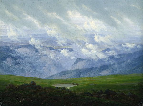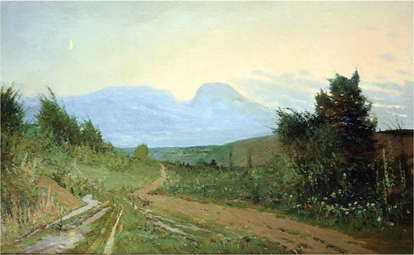 Curator: Welcome. Before us, we have "Paisagem," by Alfredo Andersen, a striking example of his plein-air painting. Editor: My first impression is one of serene spaciousness. The way the eye is led from the vibrant foreground up toward the pastel mountains gives it such depth. Curator: Andersen's legacy is significant, particularly in the context of the Paraná artistic scene, where he helped establish a European-influenced style within a distinct Brazilian sensibility. Think of the shifting cultural values of early 20th century Brazil as industrialisation expanded. Editor: The brushstrokes! Look how the loose dabs of paint create such varied textures—the rough bark of the trees, the soft grass. He's clearly interested in light, almost an impressionistic feel. How do you think this approach was received at the time? Curator: Realism remained dominant but Andersen was also deeply involved in debates of national identity. Remember he trained and worked primarily as a craftsperson before finding patrons to fund a change into the Fine Arts as such. He becomes such an interesting bridge between traditional academic circles and artists interested in modernisation. Editor: I see that interplay so clearly in his depiction of the mountains – soft focus compared to the foreground. Does the formal arrangement here reinforce what you describe as a negotiation between tradition and modernism? Curator: Absolutely. Andersen provides what are meant to be perceived as truthful impressions of nature—these plein air paintings were shown mostly at very formal art salons. How subversive do we consider art to be if it operates on two contradictory registers? Editor: Perhaps subversion wasn't always the only intention. There's a calming tranquility to this scene. You forget its positioning or its historical negotiation. Andersen seems simply to want the viewer to appreciate nature's grandeur. Curator: And to appreciate it with certain visual traditions, framed by debates in Brazilian culture! Hopefully we can agree to look beyond face-value in order to fully grasp this historical positioning. Editor: A beautiful piece, and you've certainly enriched my understanding. Thank you.