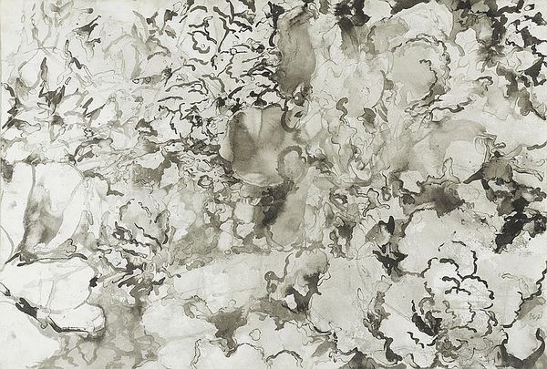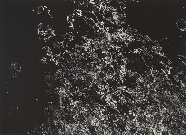 Curator: Let's consider Enrico Donati's "Decalcomania" from 1947, a mixed-media work incorporating printmaking, photography, frottage, and matter-painting techniques. Editor: The high contrast and layered textures give it such an unsettling and almost alien landscape feel, despite being monochrome. It’s visually jarring, and strangely compelling. Curator: The image is dominated by what appears to be the Decalcomania itself—that is, paint purposefully pressed and peeled to reveal these evocative textures and forms. Look at the ridges and crevices. Semiotically, they function almost like palimpsests, suggesting buried narratives. Editor: It evokes the post-war atmosphere, the sense of fragility and destruction after World War II. Donati, as a Surrealist exile in New York, would have been navigating themes of displacement and trauma through abstraction. The process he uses—decalcomania, frottage—echoes this; he’s literally taking rubbings from, or pressing onto, unseen or unheard narratives to reveal traces of memory, right? Curator: Exactly. The lack of representational form draws attention to the materiality itself. It makes us question how meaning is constructed through the physical properties of the artwork, by pushing these boundaries between painting and sculpture. Editor: And it makes me consider what these textures mean, beyond mere aesthetics. Is Donati hinting at the emotional scars of the period, the anxieties bubbling beneath the surface, not just for himself as an exiled artist but for many impacted by these times? Curator: The biomorphic shapes invite a psychological reading. Their ambiguity becomes the very vehicle for projecting fears or perhaps even new hope, reflecting art’s important role as both social and cultural reflection. Editor: Right. This piece offers more than just textural novelty, but prompts reflection on the sociopolitical moment in which Donati created it. Curator: Absolutely. It leaves me contemplating how a monochrome and seemingly abstract piece can still spark meaningful dialog about our perceptions of form. Editor: And for me, how these abstract choices function in speaking powerfully and symbolically of this turbulent past.