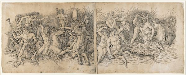 Curator: Looking at this artwork, I immediately feel a sense of vulnerability amidst violence. The delicate lines of the ink contrast sharply with the brutal scene depicted. Editor: This is an anonymous piece titled “Martyrdom of Saint Sebastian with Two Archers”, created between 1470 and 1480 during the Italian Renaissance. Currently, it resides at the Metropolitan Museum of Art in New York. It is rendered using pen and ink. What's interesting about it is its reflection of shifting power dynamics and social values of the time. Curator: Exactly. The martyrdom of Saint Sebastian, historically depicted as physical endurance in the face of oppression, has implications for queer identity studies too, considering that interpretations frame the image through lenses of desire and the erotic. The archers' expressions – or lack thereof – also adds a layer to consider. Editor: Right, the saint became an important figure during the plagues that ravaged Europe in the 15th century. What do you think the presence of the two archers reveals about attitudes toward persecution and perhaps even state power in that era? Are they instruments of a just authority or cruel, indifferent enforcers? Curator: That’s it. This portrayal emphasizes the psychological burden of enacting violence, perhaps suggesting an unease with power that's relevant today. How does this narrative connect to our ongoing societal conversations around who gets remembered and why? Editor: By examining the artwork through the lens of its socio-historical background, it invites viewers to re-evaluate how societal narratives, power and resilience have played out, in this image and more broadly, and continue to impact the reception and creation of art today. Curator: Ultimately, what's striking is that even in this supposed moment of ultimate sacrifice, Sebastian's posture feels oddly defiant, questioning the terms and the ethics of violence, raising awareness on current affairs about victim blaming, for example. Editor: I think exploring these complexities reminds us how the past still reverberates in our present moment, challenging us to create a future society free from similar persecutions.