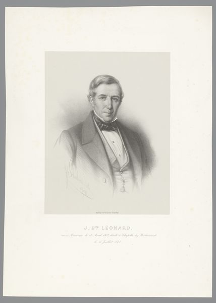 This is a portrait of Gerardus Johannis Mulder by Franciscus Bernardus Waanders, made using lithography. Lithography is a printmaking technique using a flat stone or metal plate on which the image areas are worked using a greasy substance, so that the ink will adhere to them, while the non-image areas are made ink-repellent. The great appeal of lithography in the 19th century was that it allowed relatively quick reproduction of images. Unlike etching or engraving, which involve laborious cutting of lines, lithography allowed for a more fluid, drawing-based approach. Consider how the artist uses the greasy crayon to build up tonal depth, creating a soft, almost photographic likeness. While seemingly straightforward, lithography demands skill and an understanding of the chemical reactions between grease, water, and ink. This portrait, therefore, is not just an image, but the product of a specific industrial process, one that democratized image production and made art more accessible to a wider audience. It reminds us that even seemingly simple images carry a complex history of labor, technology, and social change.