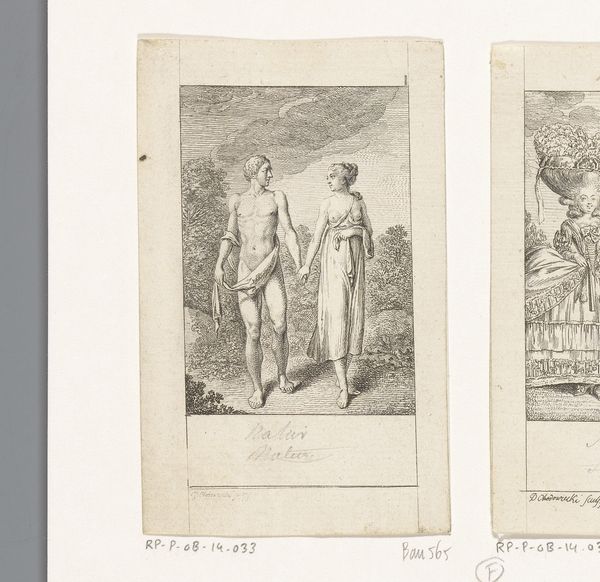This print, "Kleding voor dames en heren," by Daniel Nikolaus Chodowiecki, offers us a glimpse into the sartorial expressions of 18th-century Berlin. Notice the elaborate hairstyles and the voluminous dresses that signify status and identity. The fan, prominently displayed, acts as more than a mere accessory. Throughout history, this object appears as a symbol of femininity, discretion, and even covert communication. One can trace its lineage back to ancient civilizations, such as Egypt, where fans were associated with religious rituals and power. Over time, the fan evolved, each culture imbuing it with unique connotations. Consider the psychological weight of such gestures. The fan’s deliberate movements, the subtle signals they convey, all tap into a collective memory. The gestures are a dance of revelation and concealment that engage viewers on a subconscious level. This seemingly simple object embodies complex layers of cultural meaning that continues to resurface through history.