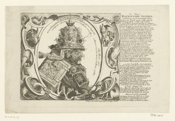 Carel Allard made this print of Pope Clement XI in 1705 using etching and engraving. These are intaglio printmaking techniques, where lines are incised into a metal plate, which is then inked and pressed onto paper. The material qualities of the print – the fineness of the lines, the sharp contrasts of light and shadow – lend themselves particularly well to satire. Look closely and you’ll see Clement portrayed as a rather absurd figure, encased in armor and topped with a comically oversized papal tiara. Prints like this were relatively inexpensive to produce, and could be circulated widely, fueling public opinion. Allard's technical skill as a printmaker is evident. He’s able to pack a wealth of detail and commentary into this small format. The act of making transforms the Pope into an object of ridicule, reflecting the political and religious tensions of the time. It reminds us that even seemingly humble materials, like paper and ink, can be powerful tools for social commentary, blurring the line between craft and art.