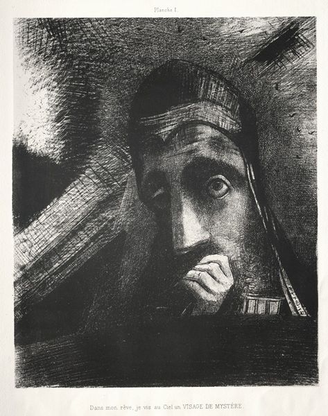 Odilon Redon made this lithograph, "Day appears at last ... and in the very disk of the sun shines face of Jesus Christ," among a series of illustrations for a book called "The Temptation of Saint Anthony" by Gustave Flaubert. Redon, working in late 19th century France, was part of a Symbolist movement which favored the evocative power of suggestion over the clarity of realism. This print can be understood in light of his broader artistic interest in exploring the complexities of human psychology and spirituality. Here, the representation of Jesus Christ merges with the rising sun, a symbol of hope, rebirth, and divine illumination. The crown of thorns, usually a symbol of suffering, is rendered with meticulous detail, contrasting with the gentle, almost ethereal face of Christ. It suggests an alternative narrative where the savior emerges, serene and resilient. The artwork reflects the artist’s grappling with themes of faith and doubt, as well as the search for spiritual meaning in a rapidly changing world.