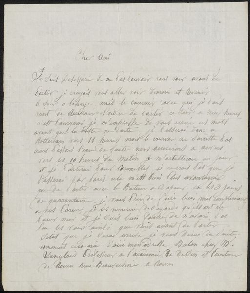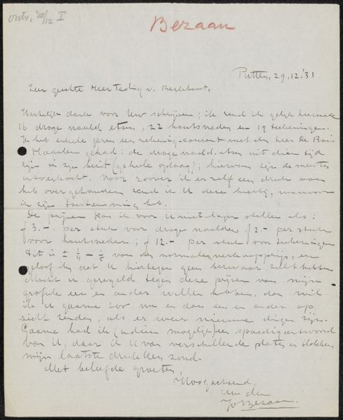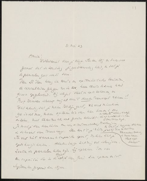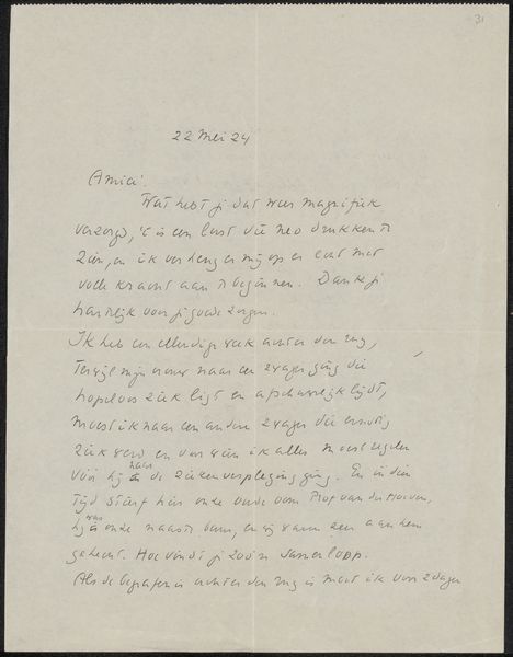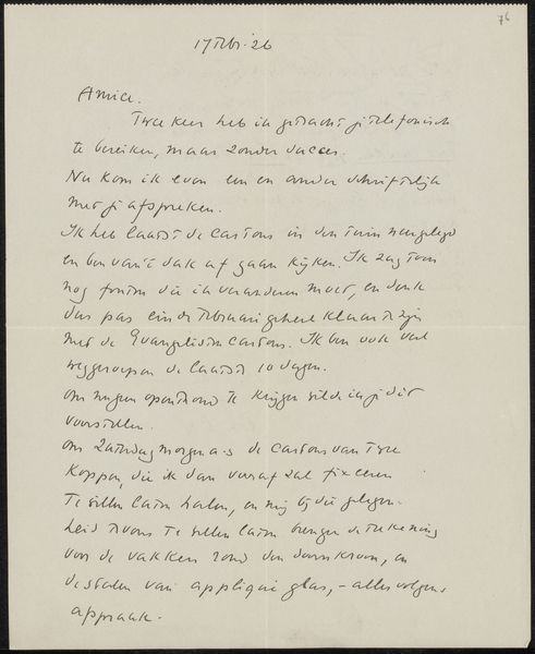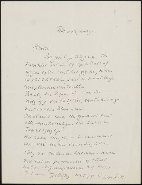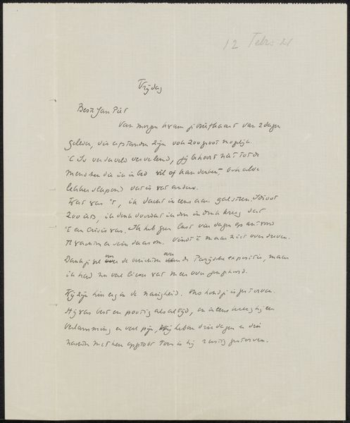 This letter, "Brief aan Willem Bogtman," was penned by Richard Nicolaüs Roland Holst, back in 1922. It's all about process, right there in the pen strokes. The ink is thin, almost watery, as if Holst dashed this off in a hurry. You can almost feel him scratching away, the pen dancing across the page. The lines vary from thick to thin, the opacity of the ink shifting with the pressure. Look at the way the words crowd each other, some almost illegible. It’s not about perfect legibility; it’s about getting the thought down, raw and unfiltered. It reminds me of Cy Twombly, that same sense of urgency and improvisation. It’s like he’s sketching with words, the letter itself becoming a kind of abstract composition. Holst is perhaps less wild than Twombly, more controlled. The act of writing, like painting, becomes a way of thinking, of wrestling with ideas and emotions in real-time.