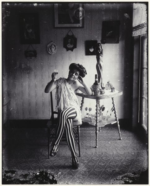Editor: So, this is Paz Errazuriz's black and white photograph, "Adam’s Apple." It feels raw, almost confrontational. What grabs you when you look at it? Curator: It's like a whispered secret shouted from the rooftops, isn't it? The light, for one, feels like confession booth lighting, highlighting the vulnerability but also the defiance in the subject's eyes. Do you feel that tension? Editor: I do. There's a push and pull. It's intimate and public all at once. The name feels like a statement. Curator: Exactly! Errazuriz is winking at us. What does gender, desire, and power really mean in the shadows? What do you think?