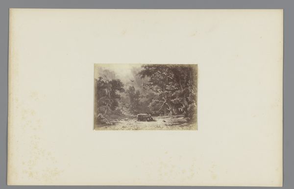 Editor: This photograph, "Gezicht op de Chine Inn te Shanklin," is attributed to Henry Pauw van Wieldrecht, possibly from 1889. It's a gelatin-silver print, a landscape, seemingly nestled within an old photo album. The image has this wonderfully hazy quality that makes it feel both distant and intimate. What symbols or layers of meaning do you think it holds? Curator: The haziness is key. Consider the symbolic weight of landscape in the late 19th century. Places weren't just physical locations; they were imbued with cultural memory. The “Chine Inn” becomes a symbol itself – what does “Chine” suggest? How might the exotic name color our interpretation, aligning it with ideas of the foreign, the unknown, a retreat perhaps? What of its architecture? Does it connect to other structures within England at the time? Editor: That's fascinating. "Chine" definitely adds a layer. It’s interesting how the exotic name creates a certain mystique. It stands apart from a generic inn in the countryside. Do you think the framing of the image, almost swallowed by foliage, reinforces that feeling of being hidden away, like a secret? Curator: Precisely! It evokes the romantic idea of nature reclaiming the man-made. This photograph becomes a visual representation of cultural values regarding nature and escapism. It plays into the Victorian era's fascination with the picturesque, with finding idealized versions of nature that reflect their own values and longings. That cottage practically disappears; it might signal a desire to relinquish control, an idealized loss of self, maybe. What does it suggest to you? Editor: Thinking about cultural values embedded in imagery is new for me. I initially just saw an old photograph! But viewing it through that lens reveals layers of longing and cultural identity that weren’t obvious. Thanks for illuminating the power of symbols in this seemingly simple scene. Curator: Absolutely! By deciphering the symbolic language, we unlock narratives that resonate across generations, enabling an insightful examination of societal priorities.