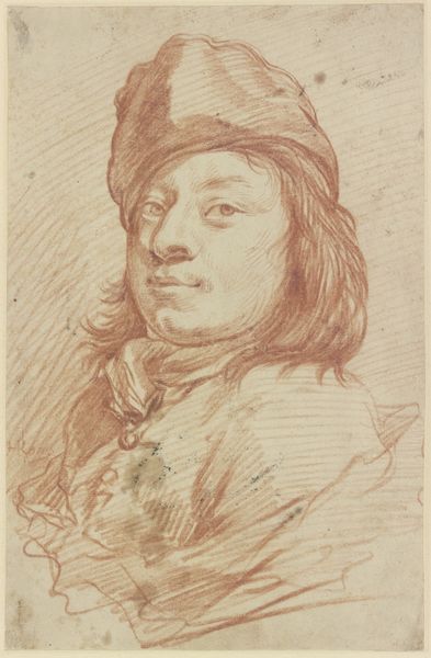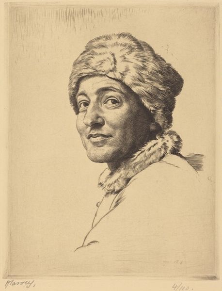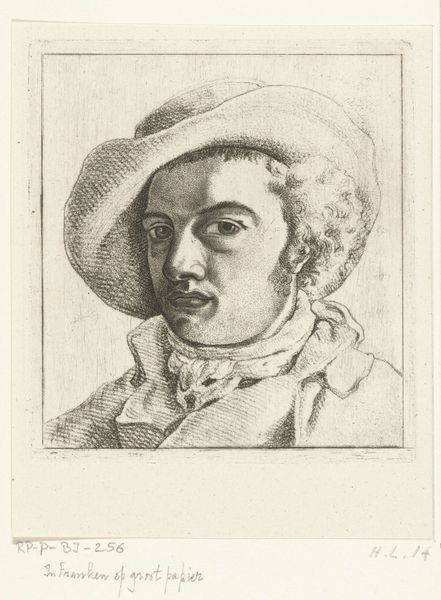 W.A. Müller created this bust portrait of a young man with a hat in 1761. It's a small etching, a medium that allowed for the relatively inexpensive reproduction of images in 18th-century Europe. The man's dress and powdered wig suggest he's a member of the middle or upper class. His pose, however, is rather informal. Resting his head on his hand was a conventional posture for representing melancholy or thoughtfulness at this time. Müller was working in an era of great social and political change. The Enlightenment was challenging traditional hierarchies, and new ideas about individual rights and freedoms were circulating widely. Etchings and engravings played a vital role in disseminating these ideas. To understand this image fully, we need to look at the history of portraiture, the conventions of dress, and the role of printmaking in 18th-century Danish society. These are just some of the resources that help us understand the image as a product of its time.